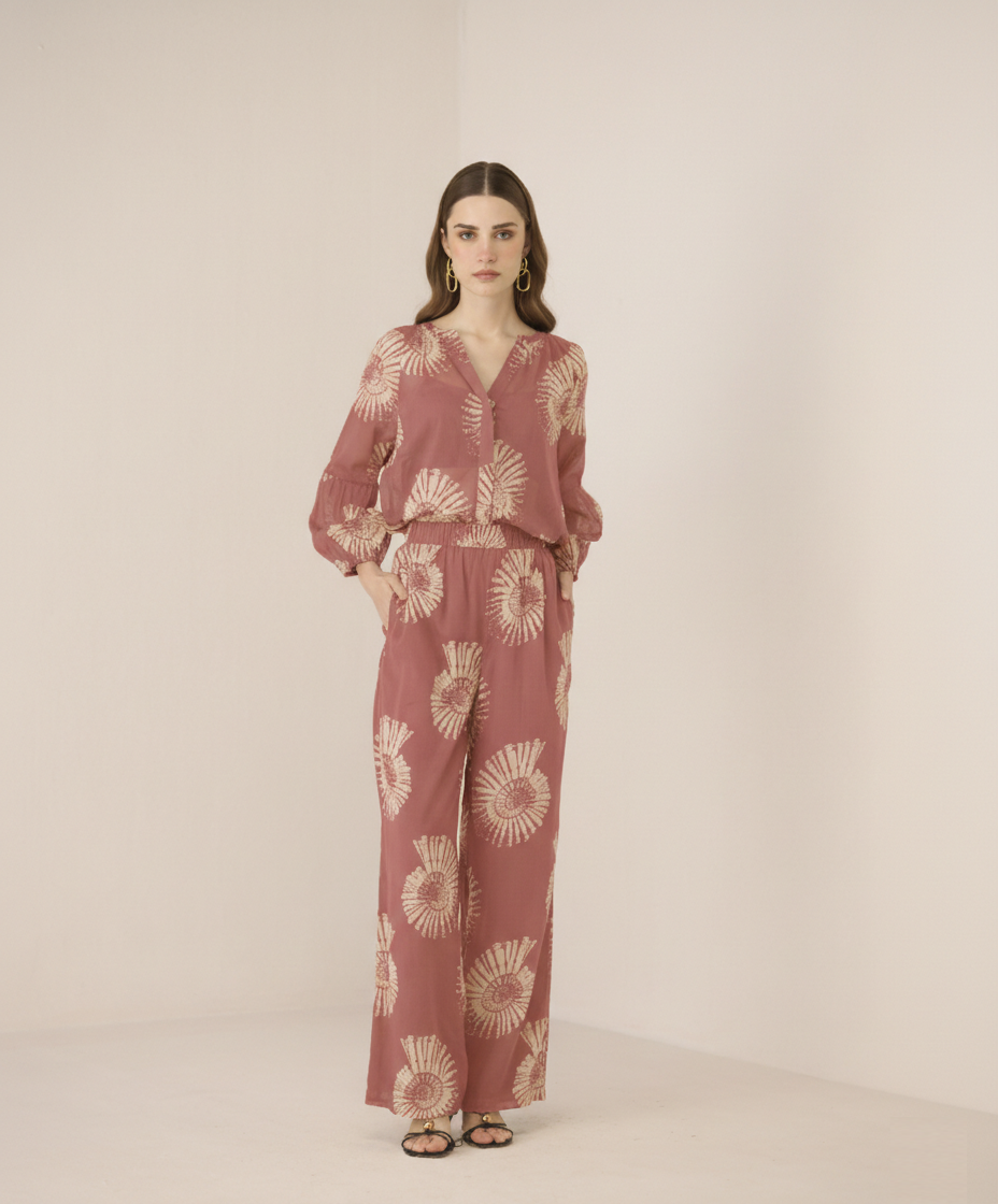 Effortlessly refined with a touch of coastal charm, these black trousers are elevated by an elegant sea shell print that adds subtle character to a sleek, modern silhouette. Easy yet polished, they are designed for comfort without compromising on style.