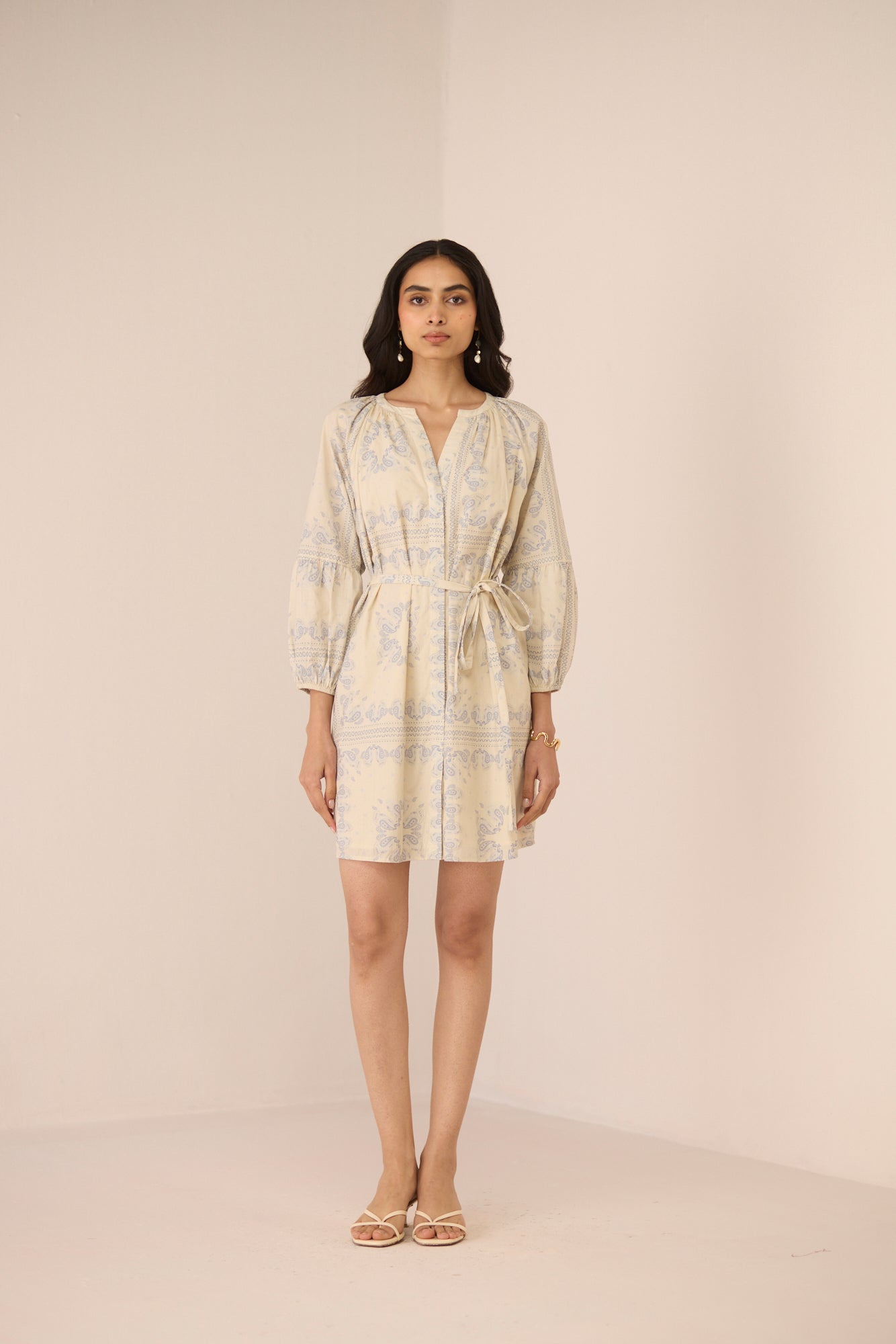 Chic and effortlessly polished, the Aria Mini Dress is designed to bring timeless elegance to everyday dressing. Crafted in crisp cotton poplin, this mini dress features a symmetrical paisley print that adds a refined yet playful charm. The flattering V-neckline is complemented by a concealed button placket, keeping the look clean and sophisticated.