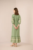 Elegant and effortlessly graceful, the Celia Maxi Dress is designed to make a soft yet striking statement. Crafted in a beautiful green hue, this maxi dress features voluminous balloon sleeves with gently gathered shoulders and a flattering V-neckline. A matching belt cinches the waist, allowing you to style it fitted or keep it relaxed for an easy, flowing silhouette.