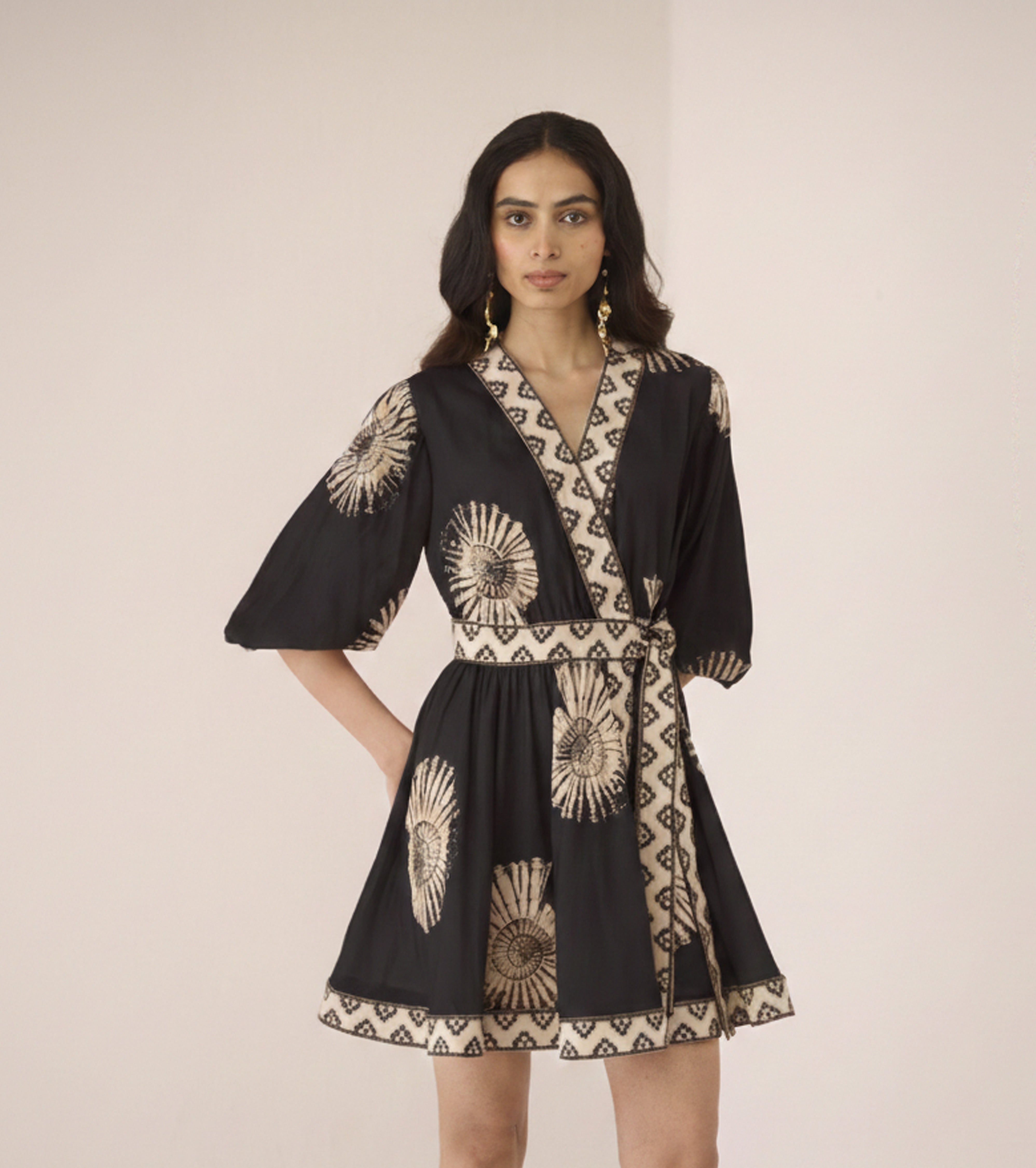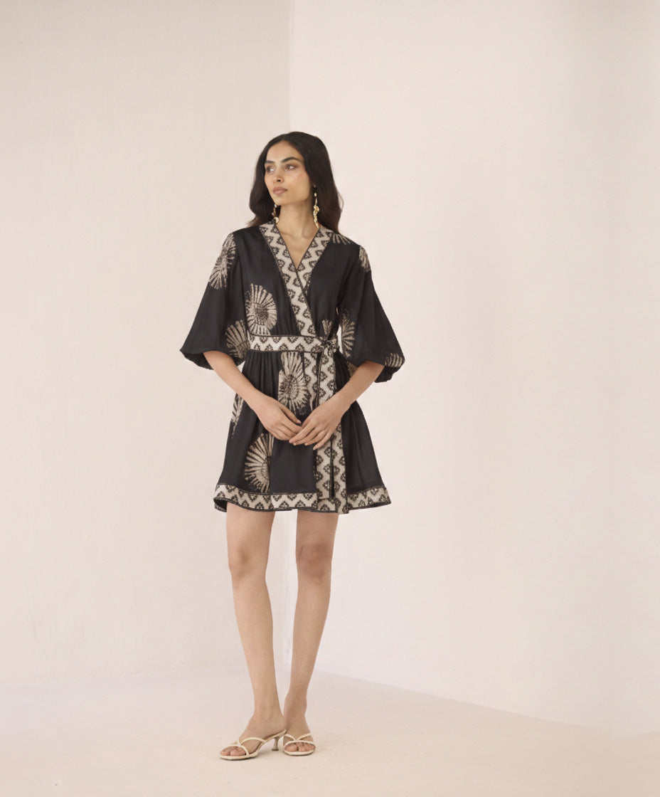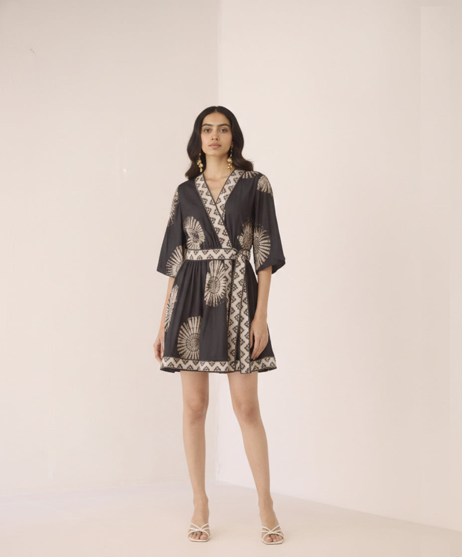 - Wrap-around mini dress silhouette