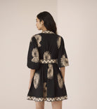 - Intricate embroidered panel along the hem