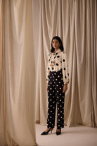 Style it tucked into the Glam Trouser in polka dot for a chic co-ord look, or wear it loose with denim for a modern, everyday spin.
