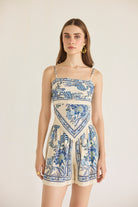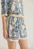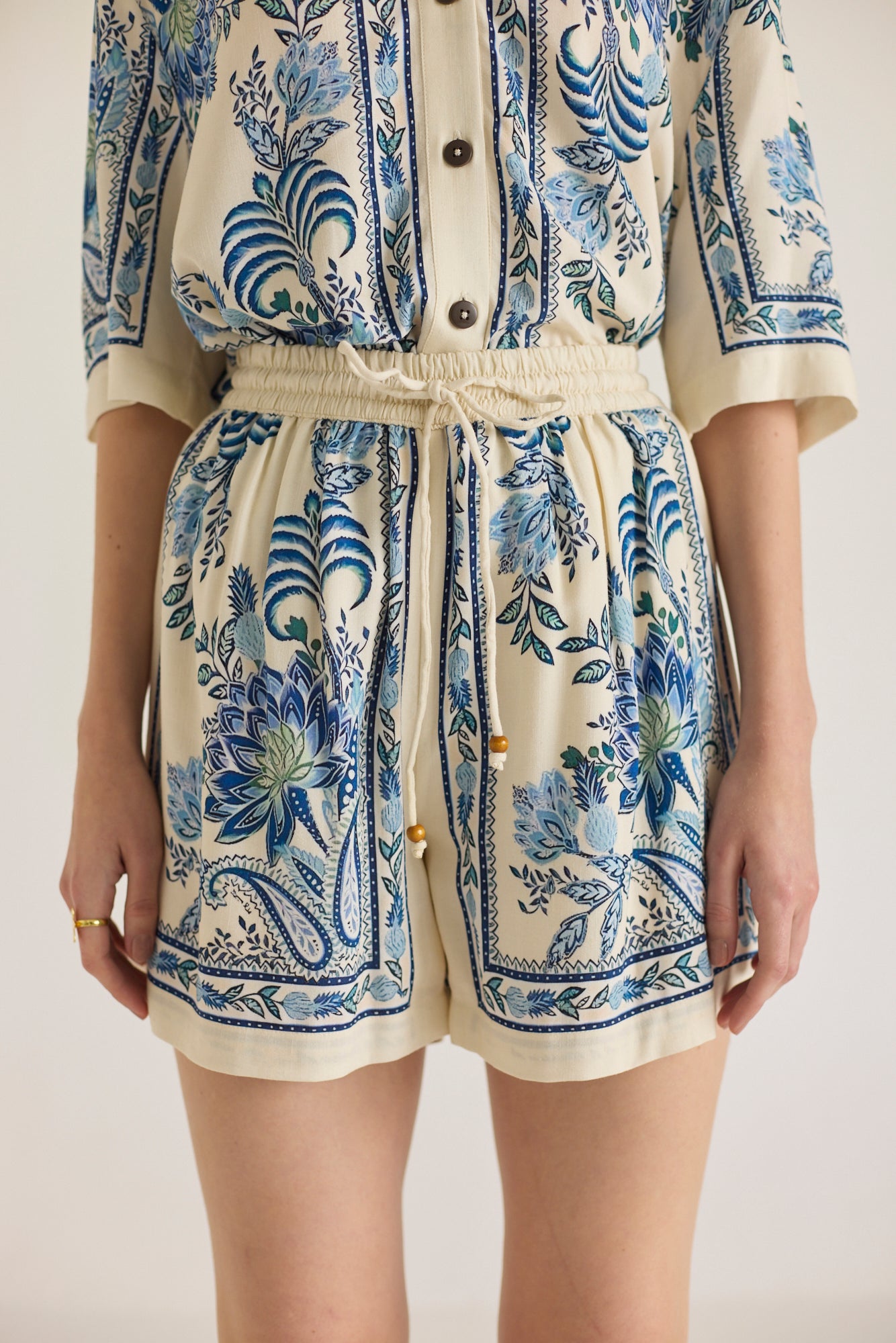 Relaxed yet refined, the Malibu Shorts are designed for easy summer days—featuring a blue botanical print, comfortable waistband, and playful beaded ties that bring a touch of charm.