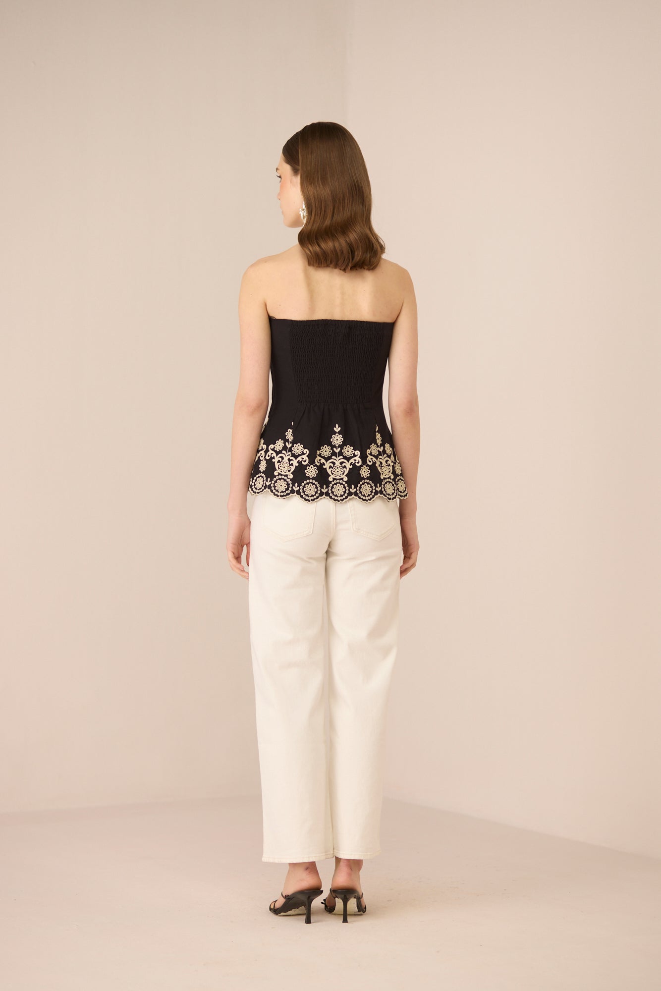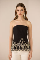 Chic and sculpted, the Kaia Tube Top is designed to flatter with a beautifully contoured silhouette and refined artisanal detailing. Featuring a soft scalloped hem for a feminine finish, the lower half is adorned with intricate contrast embroidery that adds texture and handcrafted charm.