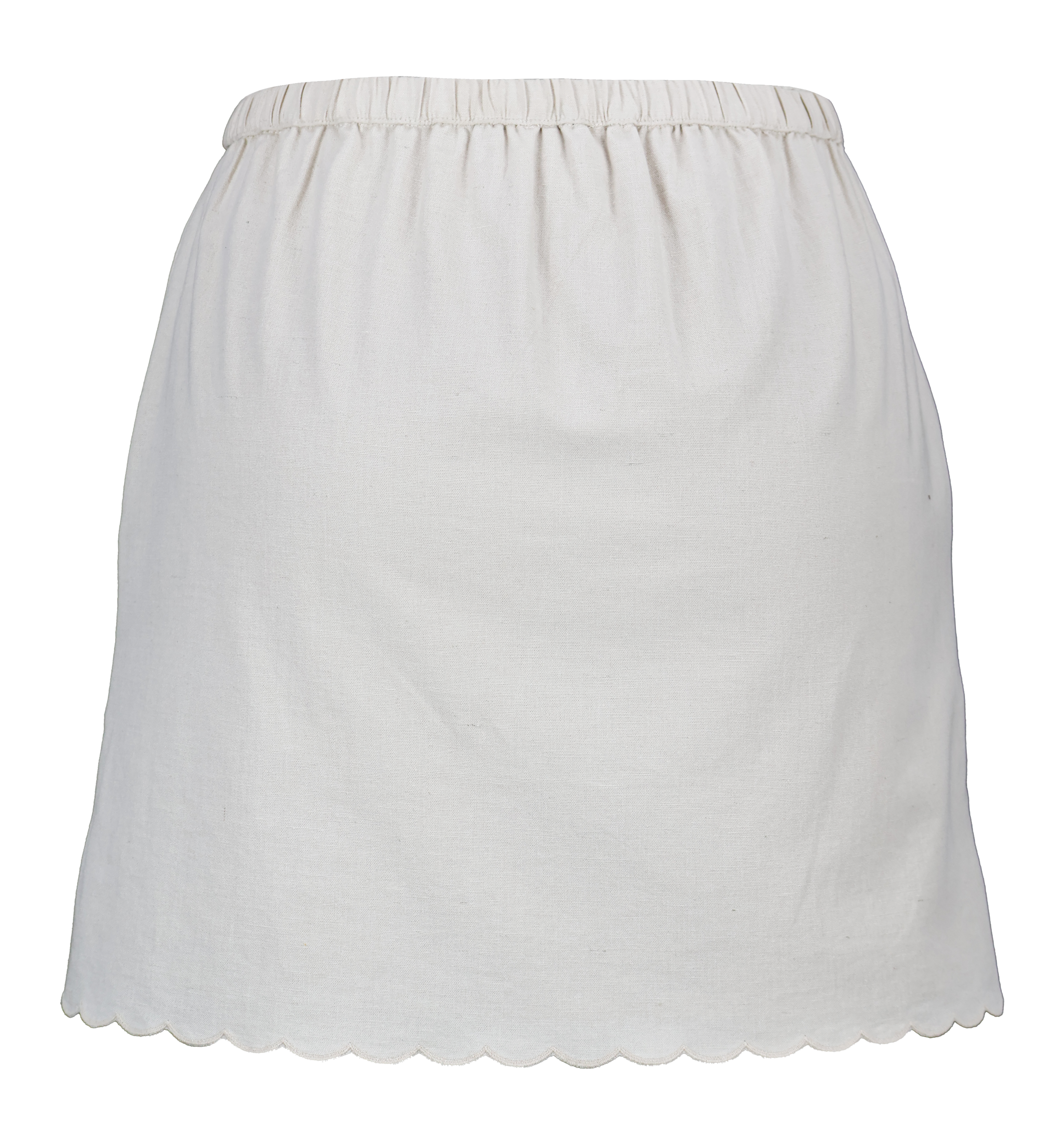 Refined yet effortlessly wearable, the Catalina Mini Skirt is designed with delicate details that elevate everyday dressing. Featuring intricate cut-out embroidery and a scalloped hem, this skirt brings a touch of elegance to a timeless silhouette. The flat front waistband offers a clean, tailored look, while the elasticated back waistband ensures comfort and ease of movement.