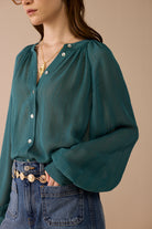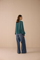 Elegant and timeless, this serene sea-green blouse is designed to exude sophistication with a hint of shimmer. Crafted in viscose georgette with vertical lurex lines, it’s a versatile piece that transitions seamlessly from workdays to evenings out.