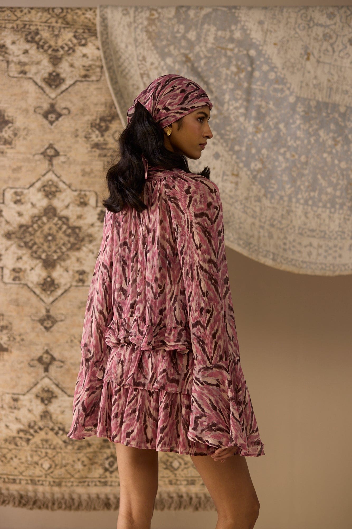 - Crafted in lightweight viscose chiffon with a pink hue print