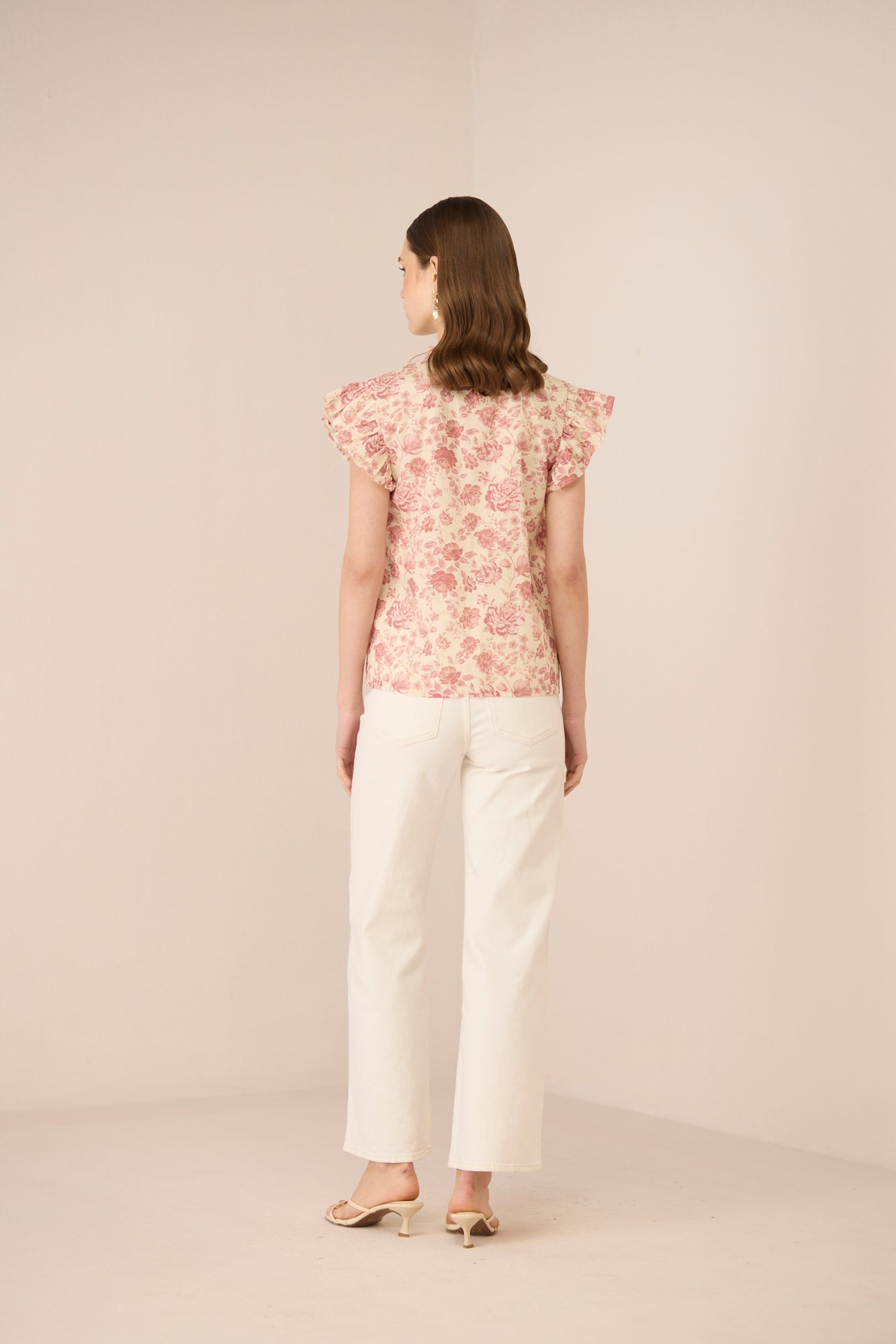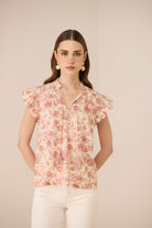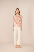 Elegant yet easygoing, the Madison Blouse features delicate frill sleeves and soft tie-up details—bringing gentle structure and feminine charm to any warm-weather look.