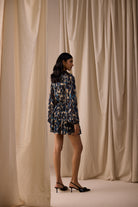 The Peach Mini Skirt is a playful, tiered silhouette crafted in viscose georgette with a blue-hued abstract print and vertical lurex lines that add the perfect touch of glam. Fully lined for comfort, it’s designed with an all-round elasticated waistband for ease, movement, and effortless styling. Flowing and flirty, this versatile mini pairs perfectly with the matching Carter Shirt or styled solo for a chic statement.