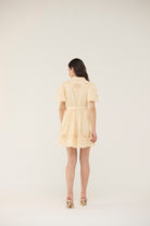 Crafted in a subtle sorbet hue, this mini dress exudes a soft and ethereal charm. Adorned with intricate embroidery and delicate cutwork detailing, it adds a touch of whimsical elegance to your ensemble.