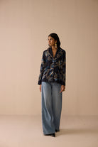 Structured yet feminine, the Celine Blazer in navy is elevated with allover floral stitch embroidery, bringing sophistication and artistry to a timeless silhouette. Finished with wooden buttons, it strikes the perfect balance between tailored polish and everyday comfort.