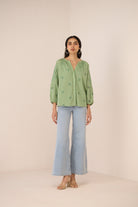Effortlessly chic with an easy, relaxed feel, this embroidered Chelsea Blouse is designed for versatile everyday styling. Featuring a flattering V-neckline and a concealed placket for a clean, seamless finish, it balances refined detailing with laid-back appeal.