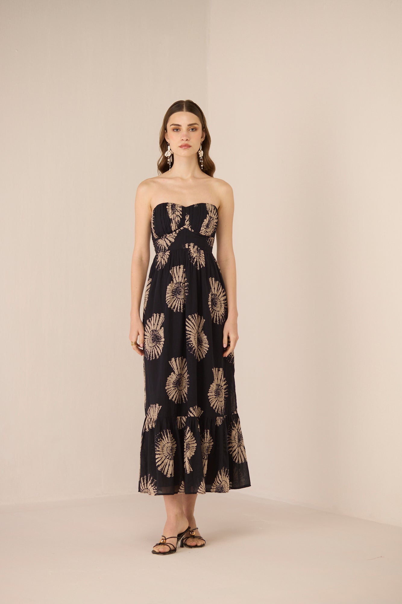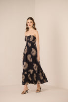 A striking blend of structure and softness, this maxi dress features exquisite corset boning that beautifully sculpts the silhouette, offering refined structure with an elegant finish. The strapless neckline enhances its effortless appeal, making it perfect for warm summer days and elevated evening moments.