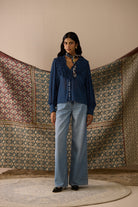 Romantic and effortlessly chic, the Beau Blouse is designed to bring charm and femininity to any look. Crafted in lightweight navy blue viscose chiffon with subtle vertical lurex lines, it shimmers with just the right touch of glam—perfect for day-to-night dressing.